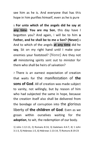 3:1-3, 5) Hebrews 1:5, 6) Hebrews 1:13-14, 7) Romans 8:19-23