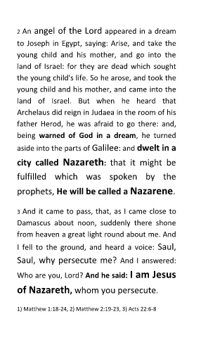 1) Matthew 1:18-24, 2) Matthew 2:19-23, 3) Acts 22:6-8